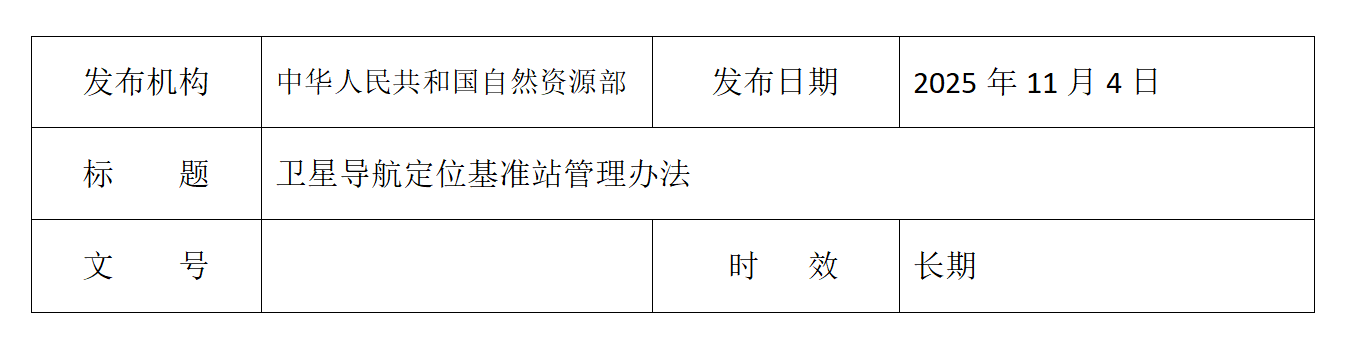 (2025年11月4日自然资源部令第19号公布 经2025年9月4日自然资源部第3次部务会议审议通过 自2026年1月1日起施行) 第一条 为了规范卫星导航定位基准站的建设和运行维护,促进卫星导航定位产业有序发展,维护国家地理信息安全,根据《中华人民共和国测绘法》《中华人民共和国数据安全法》《中华人民共和国保守国家秘密法》等法律法规,制定本办法。 第二条 在中华人民共和国领域和中华人民共和国管辖的其他海域开展卫星导航定位基准站的建设和运行维护等活动,应当遵守本办法。 第三条 本办法所称卫星导航定位基准站,是指对卫星导航信号进行长期连续观测,并通过通信设施将观测数据实时或者定时传送至数据中心的地面固定观测站。 第四条 卫星导航定位基准站建设和运行维护实行统一规划、统一标准、统一监管,坚持合理布局、依法备案、资源共享、保障安全的原则,应当符合国家有关法律法规、技术规范和标准。 第五条 自然资源部负责全国卫星导航定位基准站建设和运行维护的监督管理。 县级以上地方人民政府自然资源主管部门负责本行政区域内卫星导航定位基准站建设和运行维护的监督管理。 第六条 自然资源部会同国务院有关部门制定全国卫星导航定位基准站建设布局规划,引导卫星导航定位基准站建设合理布局,充分利用已有站点资源,避免重复和无序建设。 全国卫星导航定位基准站建设应当符合国土空间规划,纳入国土空间规划实施监督信息系统。 第七条 卫星导航定位基准站建设应当符合国家相关建设标准。 卫星导航定位基准站建设前,建设单位应当对观测环境、地质构造、安全防护等条件进行评估。 建设卫星导航定位基准站需要办理用地手续的,应当按照土地管理有关法律法规的规定办理。 卫星导航定位基准站应当统筹建设配套数据中心,用于卫星导航定位基准站数据收集、存储、使用、加工、传输、提供。 第八条 建设单位依法开展卫星导航定位基准站建设、运行维护并提供服务,也可以委托承建单位进行卫星导航定位基准站建设,委托运行维护单位进行卫星导航定位基准站运行维护并提供服务。 进行卫星导航定位基准站建设的单位和提供测绘基准服务的运行维护单位应当具备大地测量甲级测绘资质。提供其他社会服务的运行维护单位应当具备大地测量乙级以上测绘资质;但是,仅为本单位提供专业监测、科学研究服务的除外。 第九条 卫星导航定位基准站开工建设时,建设单位应当向所在地省、自治区、直辖市人民政府自然资源主管部门备案;建设多个卫星导航定位基准站且跨两个以上省级行政区域的,应当向自然资源部备案。 第十条 建设单位应当通过全国卫星导航定位基准站备案管理信息系统提交下列备案信息: (一)建设单位、承建单位和运行维护单位的基本情况; (二)卫星导航定位基准站及其数据中心的地址、数据传输网络类型、数据中心安全方案等信息; (三)卫星导航定位基准站观测墩类型、设备型号、站点用途、数据中心软件等信息。 备案信息涉及国家秘密的,应当按照涉密信息管理要求提交。 第十一条 建设单位应当向备案机关提交完整规范的备案信息。备案信息不完整、不规范的,备案机关应当在五个工作日内通知建设单位补充完善。 备案机关收到备案信息后应当组织对备案信息开展核查,并在二十个工作日内向建设单位出具备案文件。卫星导航定位基准站的建设和运行维护不符合国家有关标准和要求的,备案机关应当在备案文件中提出改正意见。建设单位应当及时改正并更新备案信息。 卫星导航定位基准站及其数据中心所在地省、自治区、直辖市人民政府自然资源主管部门负责开展备案信息核查。 卫星导航定位基准站备案后,备案信息发生变化的,建设单位应当在十个工作日内告知备案机关。其中,建设单位、承建单位和运行维护单位变更,卫星导航定位基准站及其数据中心搬迁,数据传输网络类型、数据中心安全方案发生变化的,建设单位应当在十个工作日内重新提交备案。 卫星导航定位基准站或者数据中心不再运行的,建设单位、运行维护单位应当按照测绘成果管理有关规定妥善保管或者销毁相关测绘成果,并在十个工作日内告知备案机关;备案机关应当注销相关备案信息。 第十二条 建设单位应当对备案信息的真实性负责,并按照备案信息有关内容开展卫星导航定位基准站建设和运行维护。 建设单位、运行维护单位应当对卫星导航信号观测设备进行校准,对定位精度和可用性等服务性能进行测试,保障卫星导航定位基准站软硬件基础设施的正常运行和服务质量。 第十三条 各类测绘活动应当使用国家统一的测绘基准服务。 自然资源部和省、自治区、直辖市人民政府自然资源主管部门会同本级人民政府其他有关部门依托全国卫星导航定位基准站,建立统一的卫星导航定位基准服务系统,提供国家统一的测绘基准服务。 提供其他社会服务应当以国家统一的测绘基准服务为起算依据,并及时更新。 第十四条 建设单位、运行维护单位、使用卫星导航定位基准站数据的单位应当依法承担相应的数据安全保密责任。 建设单位、运行维护单位、使用卫星导航定位基准站数据的单位应当建立数据安全保障制度,依法采取相应的技术措施、保密措施等,对收集、存储、使用、加