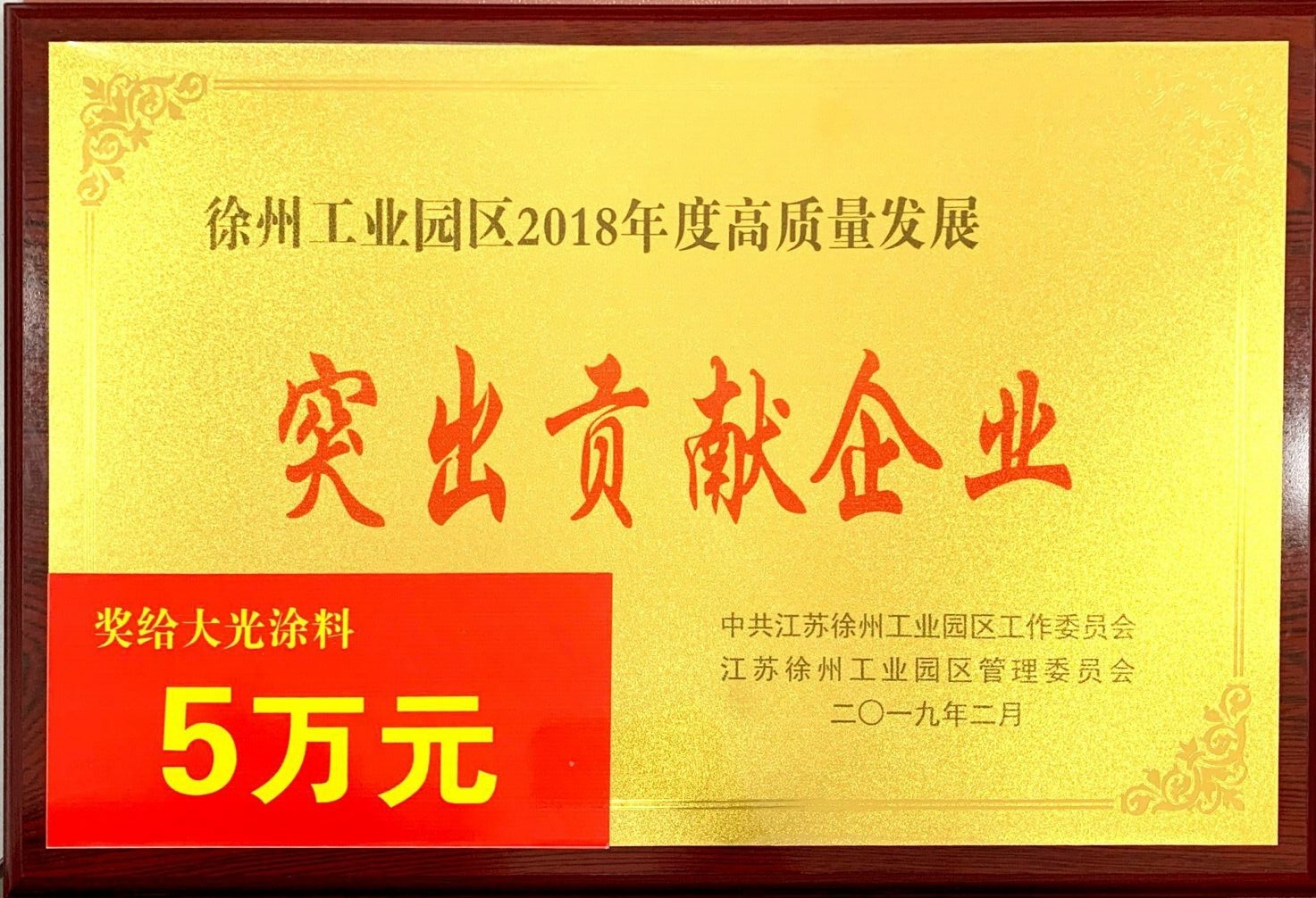 | 徐州大光涂料厂荣获徐州工业园区2018年度高质量发展“突出贡献企业”称号 |
